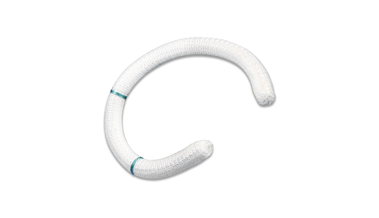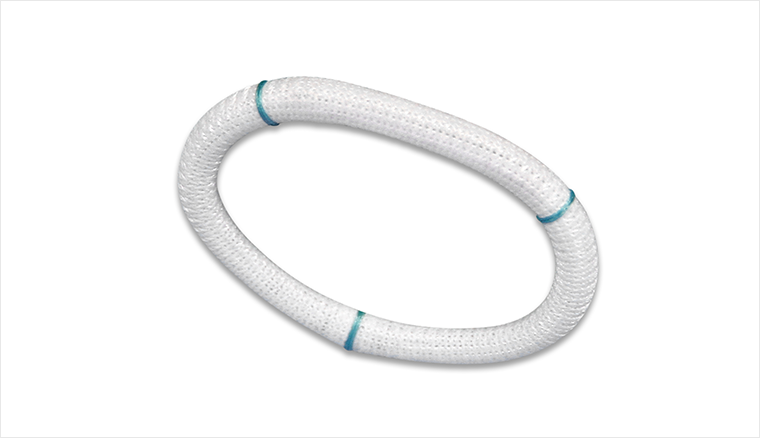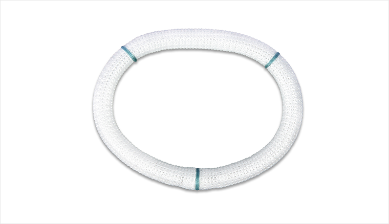 • 环体支撑管外部包被有一层质地柔软而富有弹性的医用聚酯编织物。这层编织物不仅保证了环体与瓣环组织有很好的贴附,同时具有很好的生物相容性。经动物实验证实,该人工瓣环被植入3周后即可被心内膜全部覆盖。